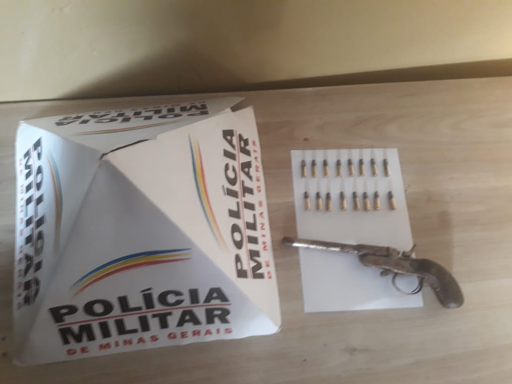 Os policiais ao efetuarem buscas na mochila localizaram uma garrucha calibre .22 e 16 munições do mesmo calibre.