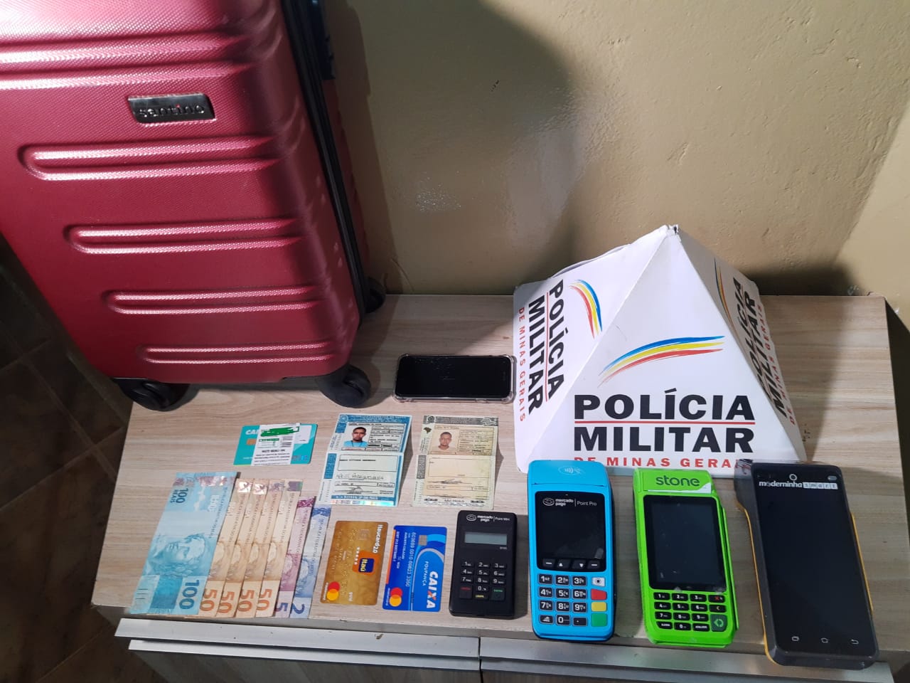 Durante buscas na hospedagem foram recolhidas máquinas utilizadas para as transações ilícitas, além de cartões de vítimas.