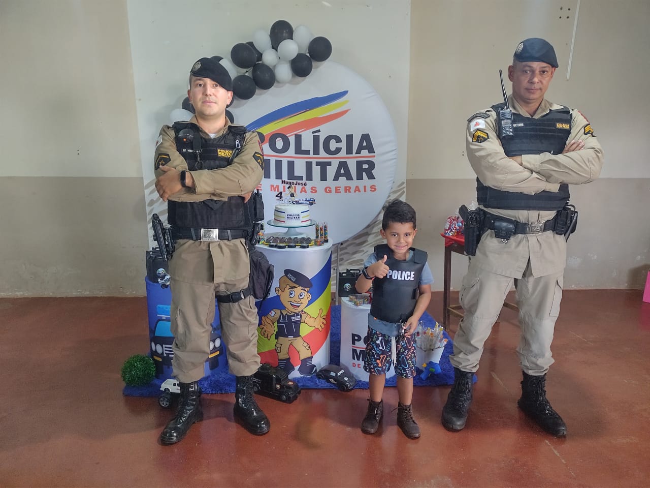MONTE CARMELO (MG) - A Polícia Militar de Monte Carmelo marcou presença na segunda-feira, 06/10, em uma comemoração do aniversário da criança Hugo José, que completou 4 anos e é um grande admirador da Instituição.
