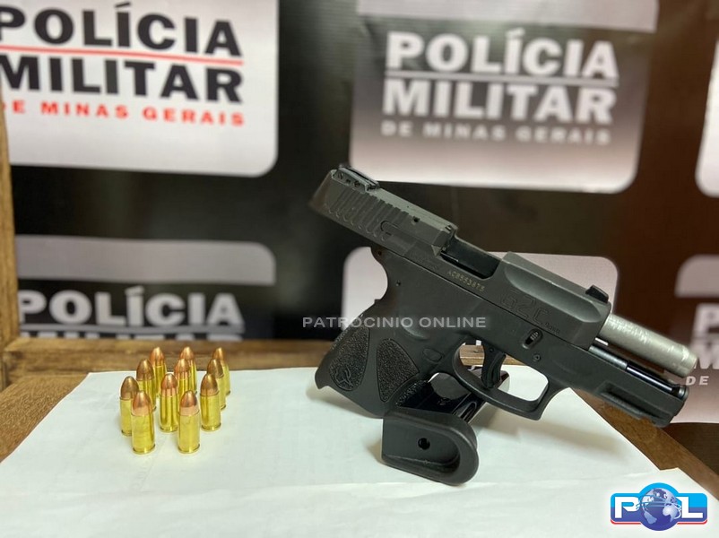 Os militares durante revista, localizaram uma pistola taurus 9mm municiada, alimentada e carregada.