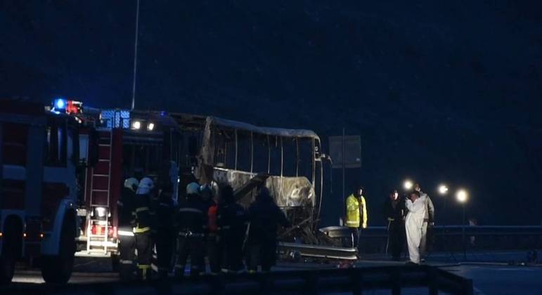 O veículo incendiado, que transportava pelo menos 52 pessoas, incluindo dois motoristas, tinha placa da Macedônia do Norte e estava voltando de uma viagem turística a Istambul, na Turquia.
