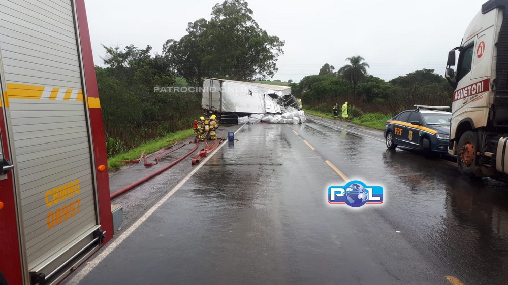 Na manhã desta quinta-feira, 11/11, as Equipes do Corpo de Bombeiros foram acionadas por volta das 08h20min para atendimento de acidente envolvendo tombamento de uma carreta Bitrem carregada com 60.000 L de etanol na BR262, km 717, sentido Araxá.