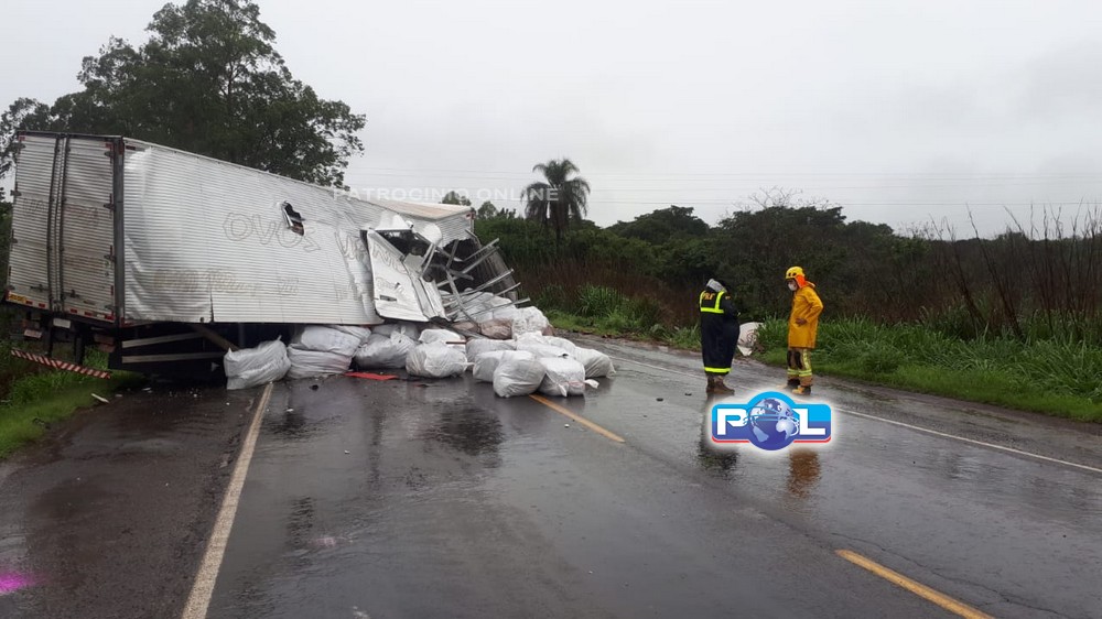 Os militares do Corpo de Bombeiros constataram uma colisão frontal com um segundo veículo caminhão baú carregado com calçados. Duas vítimas no local com ferimentos leves, sendo uma delas encarcerada.