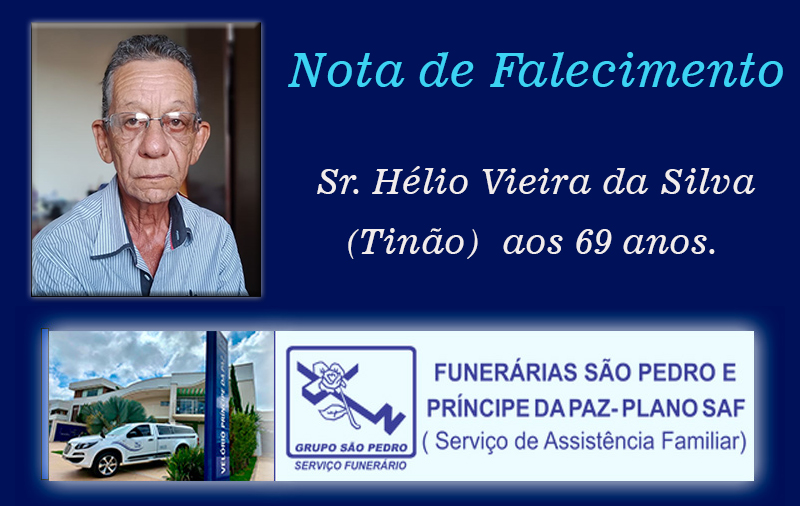 Faleceu nesta segunda-feira, 2/2, em Patrocínio/MG, o Sr. Hélio Vieira da Silva (Tinão) aos 69 anos.