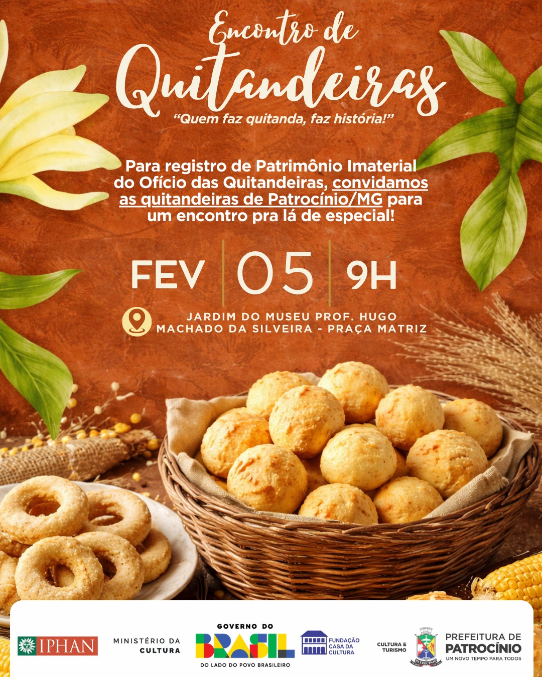 A Fundação Casa da Cultura Dr. Odair de Oliveira realiza, na próxima quinta-feira, dia 5 de fevereiro, o Encontro de Quitandeiras de Patrocínio, uma iniciativa voltada à valorização da cultura, da memória e dos saberes tradicionais do município. O evento acontece às 9 horas, no Jardim do Museu, e é aberto a todas as mulheres que mantêm viva a tradição das quitandas.