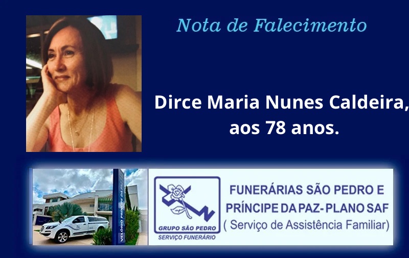 Faleceu em Patrocinio, a senhora Dirce Maria Nunes Caldeira, aos 78 anos.