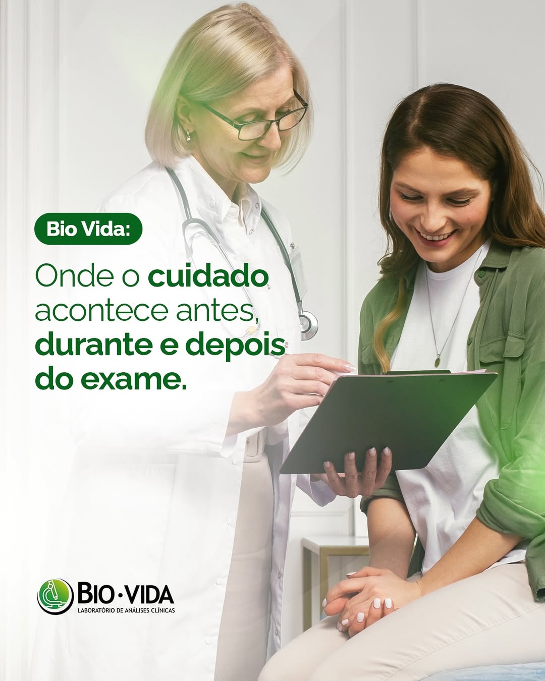 Na Bio Vida, entendemos que por trás de cada amostra, de cada resultado, existe uma vida, uma história, uma preocupação. Por isso, nossa “ação” vai muito além da técnica. Ela começa no olhar que acolhe, na palavra que acalma, no toque que humaniza.