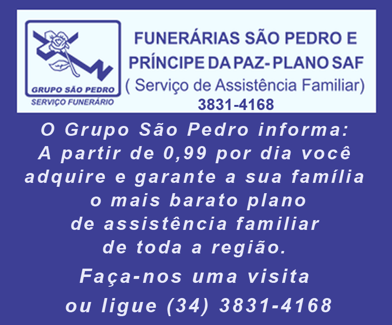 O corpo chegará por volta das 15h00ms de Belo Horizonte, será velado na Funerária Frederico Ozanam, seguindo ás 18h00 horas para o Cemitério Municipal de Patrocínio