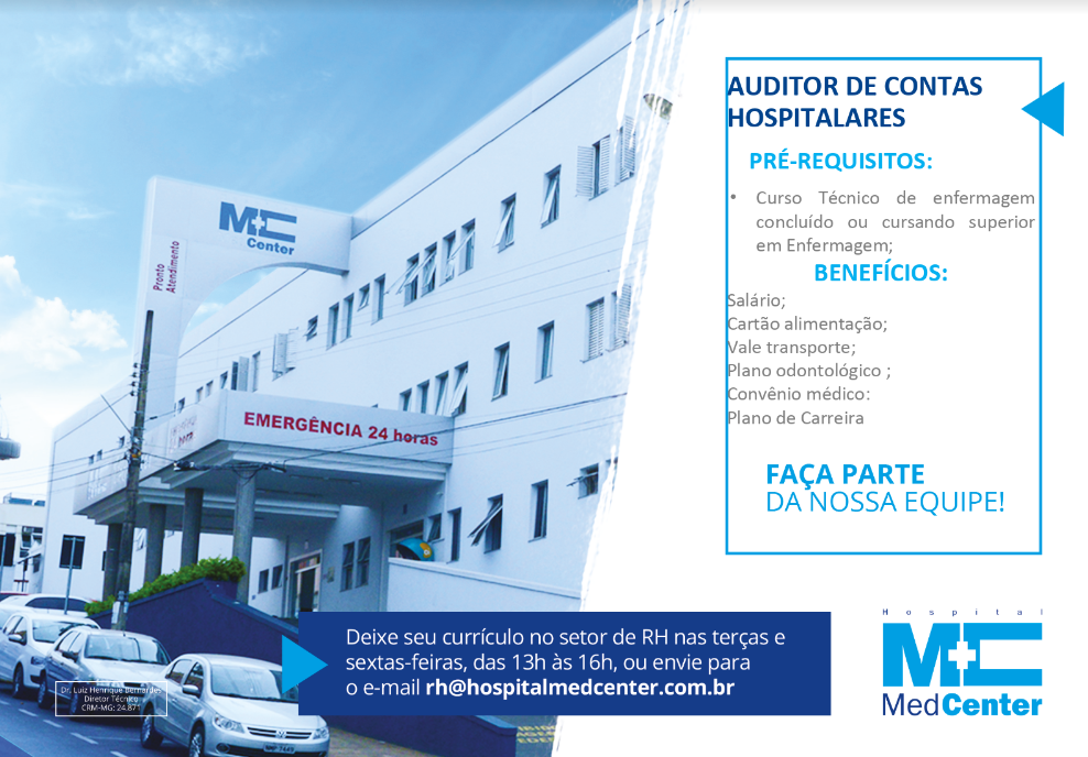 ENFERMEIRO (1 VAGA) Enfermeiro assistencial: possuir curso de enfermagem, experiência na área hospitalar; Salário: R$:1379,19 Benefícios: Assistência Médica Assistência Odontológica Ticket alimentação Vale Transporte Descontos em consultas do hospital |