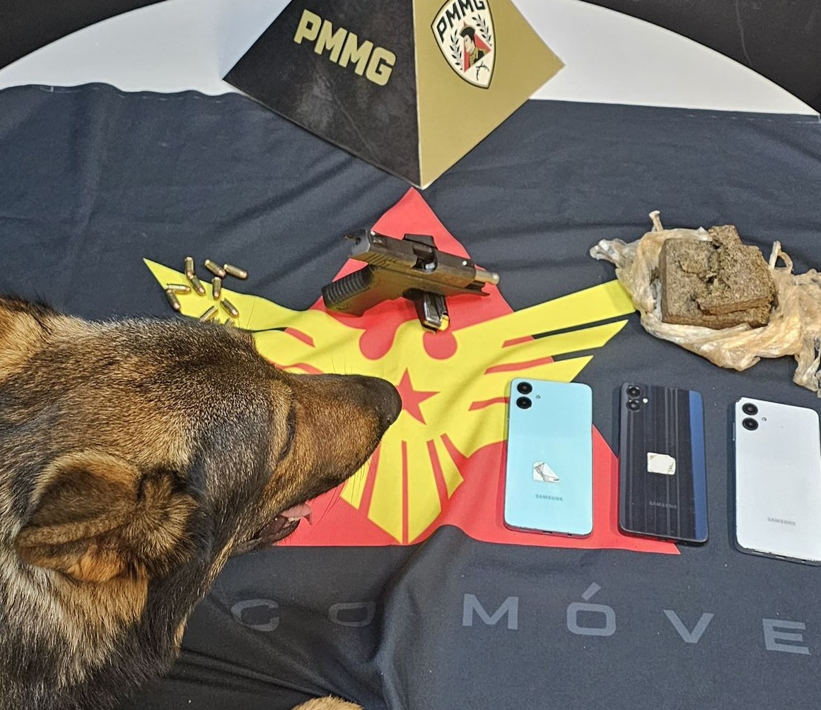 Durante a ação, os militares tiveram sucesso na prisão de um homem de 31 anos, bem como na apreensão de arma de fogo, munições, entorpecentes, celulares e uma pistola marca Taurus, calibre .380, 12 munições calibre .380, uma barra de maconha, um tablete de maconha e 3 celulares.