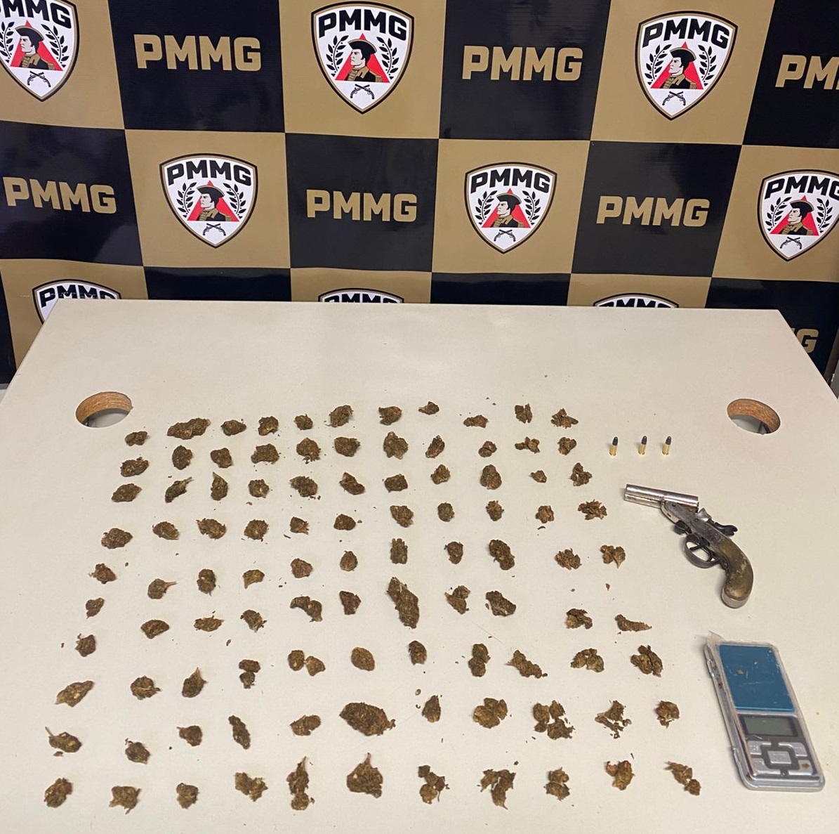 Foram apreendidos três mini celulares, um carregador e três embrulhos contendo maconha, além de porções de fumo e papéis para confecção de cigarros.
