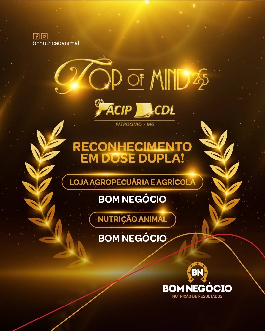 A Bom Negócio é Top of Mind nas ACIP/CDL de Patrocínio em duas categorias — um resultado que reflete a confiança e o carinho de todos que acreditam no nosso trabalho.