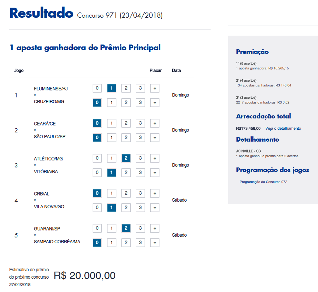 Estimativa de prêmio do próximo concurso 24/04/2018