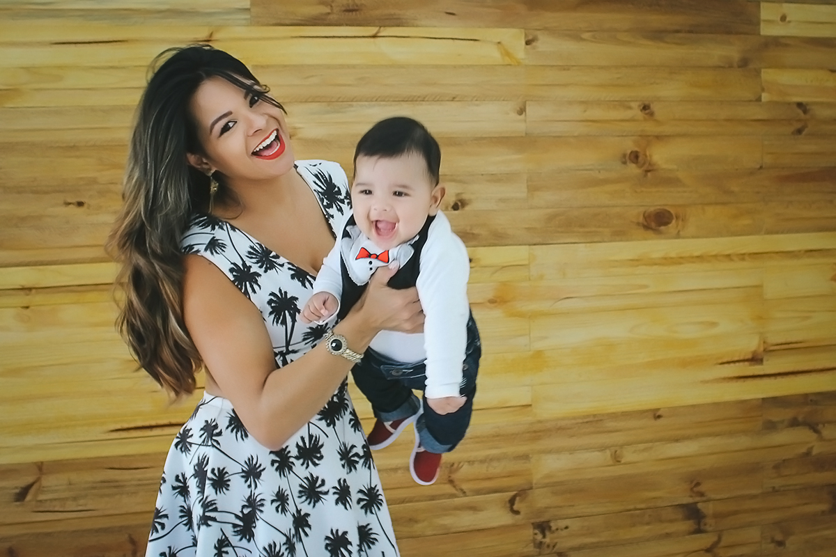 A linda foto vencedora tem a mamãe Franciele e o sorridente bebê Davi.