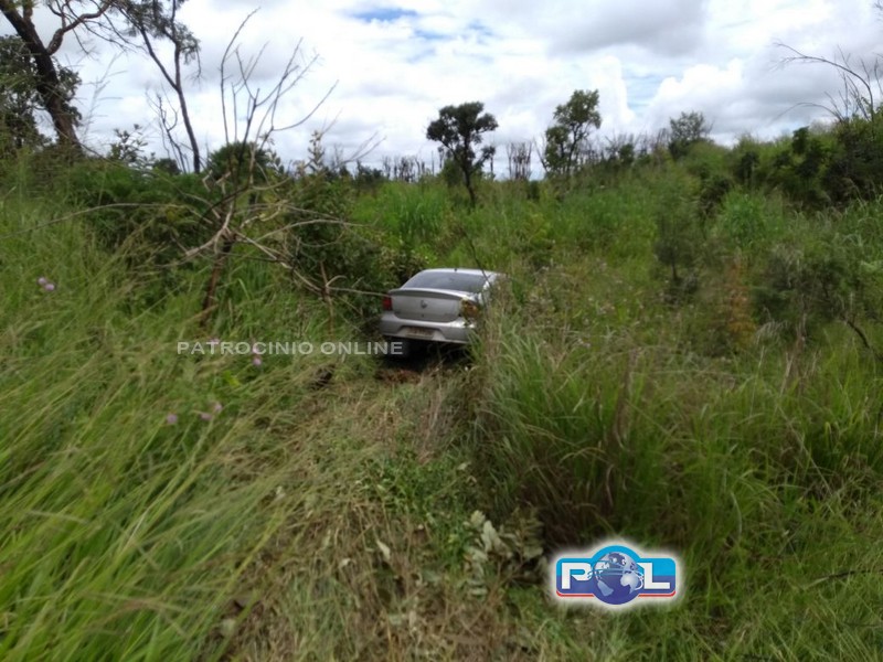 Durante os rastreamentos foi localizado a 04 KM de Cruzeiro da Fortaleza na estrada que da acesso a Chapadão de ferro o veículo FIAT STRADA COR BRANCA PLACA PUZ 7270 caído dentro de um mata burro e ao consultar o sistema informatizado constatou que ele havia queixa de furto/roubo.