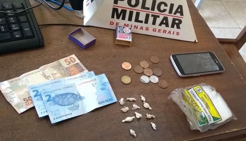 Durante busca pessoal, com o autor foram encontrados, R$ 5,00. Com o menor infrator de 17 anos, foram encontradas, nove pedras de crack embaladas e prontas para o comércio, um telefone celular marca Nokia de cor cinza e R$ 31,00 em cédulas diversas.