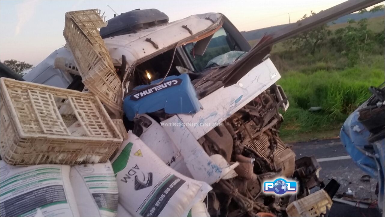Na madrugada de hoje,201/12, por volta das 05 horas, uma colisão frontal entre dois caminhões na BR 146, KM 13, próximo ao Trevo da Catiara, deixou um motorista ferido que foi socorrido a Santa Casa de Patrocínio e outro morto preso as ferragens.