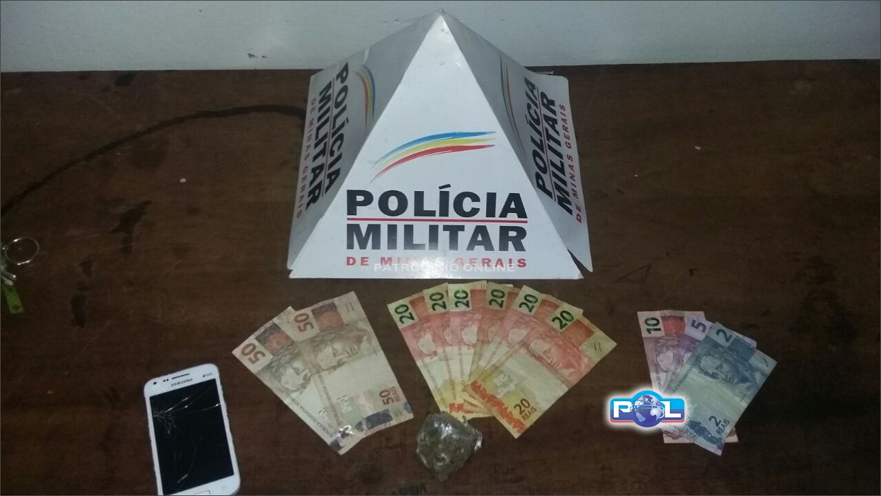 PATROCÍNIO/MG - No dia 08, por volta de 00h21min, durante patrulhamento a Policia Militar recebeu informações dando conta que um rapaz de cor parda, magro e alto, trajando calça jeans e blusa de frio na cor preta, posteriormente identificado, estaria na esquina da Avenida Odir Aleixo, cruzamento com Rua Eduardo Lane, Bairro Enéias Ferreira de Aguiar, comercializando drogas.