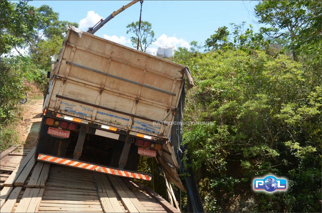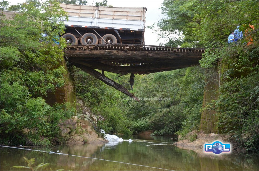 Um caminhão carregado com 32 toneladas de fertilizantes tentou na manhã dessa segunda-feira, 06/11, passar pela ponte de um afluente do Córrego Feio próximo a Serra do Gavião, com capacidade para 12 toneladas.