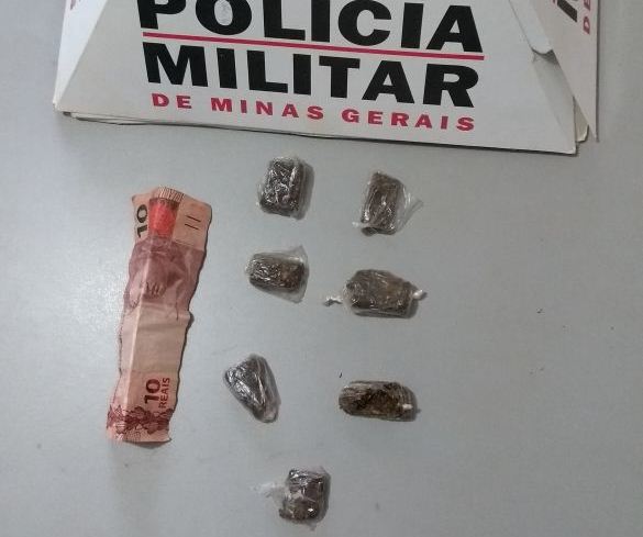 Após busca pessoal e no local, os policiais localizaram com um menor de 15 anos, 07 sete buchas de maconha embaladas para venda e dinheiro.