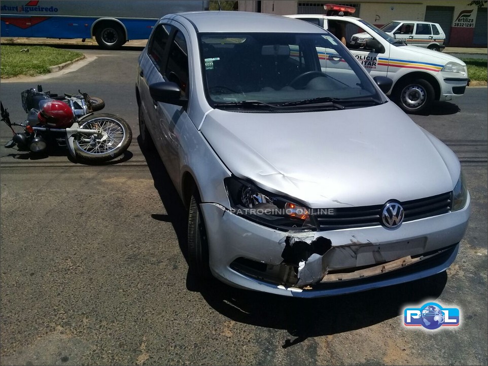 PATROCÍNIO (MG) - Às 13h14 de 18/10, um acidente envolvendo motocicleta e um VW Gol no cruzamento das Avenida Faria Pereira com Rua Equador no Bairro Nações.