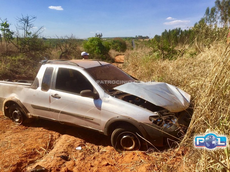 PATROCÍNIO (MG) Uma pick-up Fiat Strada ano 2006, placas HDT 3857 de Uberaba ocupada por duas pessoas saiu da estrada e capotou na MGC462, na altura do KM10, próximo a Fazenda Beloni. O veículo caiu em barranco de cerca de dois metros numa estrada vicinal paralela à rodovia.