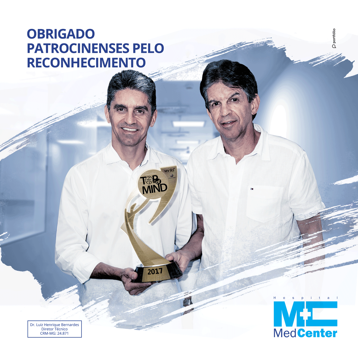 Como reconhecimento pelos excelentes serviços prestados a comunidade de Patrocínio e região, o Hospital Med Center, recebeu no dia 26 de julho de 2017, o prêmio “Top Of Mind”, apontado em uma pesquisa feita pelo Instituto Veritá de Pesquisas e a TV Paranaíba, no município de Patrocínio – MG, como o Hospital mais lembrado na Categoria Hospital no ano de 2017.