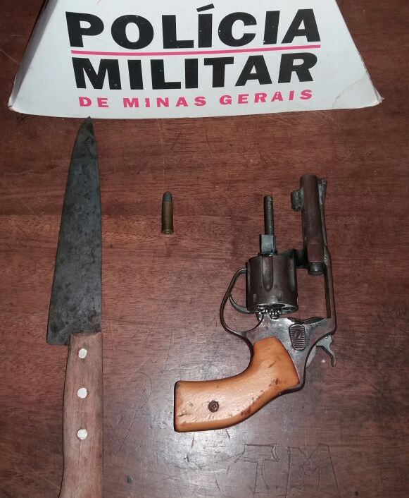 Foi aprendido um revolver calibre .32 com uma munição intacta e faca