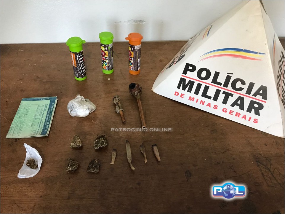 PATROCÍNIO/MG - No dia 24, às 16h53min, durante patrulhamento militares visualizaram um menor infrator de 17 Anos, sendo que ele tentou jogar fora uma carteira de cigarros. Efetuada a abordagem, após busca pessoal foi encontrado em seu poder R$ 50,00 em dinheiro e ao verificar a carteira de cigarros, foi encontrado em seu interior 10 buchas de maconha e 26 pedras de crack embaladas para venda.