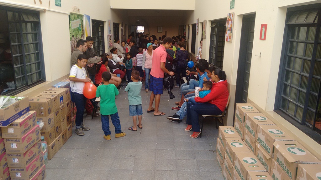 Arrecadação de caixas de leite foi ação escolhida para o Dia C e proporcionou um momento de alegria à instituição que assiste crianças e jovens no Bairro Serra Negra.
