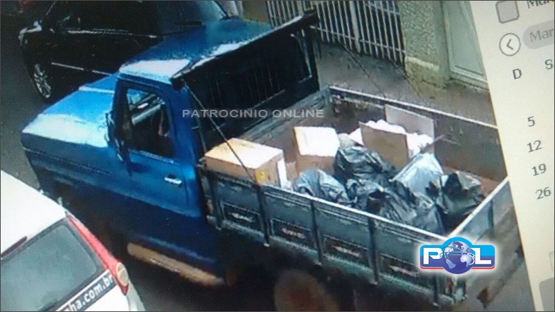 O produto do roubo foi colocado na carroceria de uma caminhonete F1000 de cor azul e carroceria de madeira que estava estacionada ao lado de fora da loja.