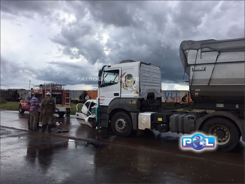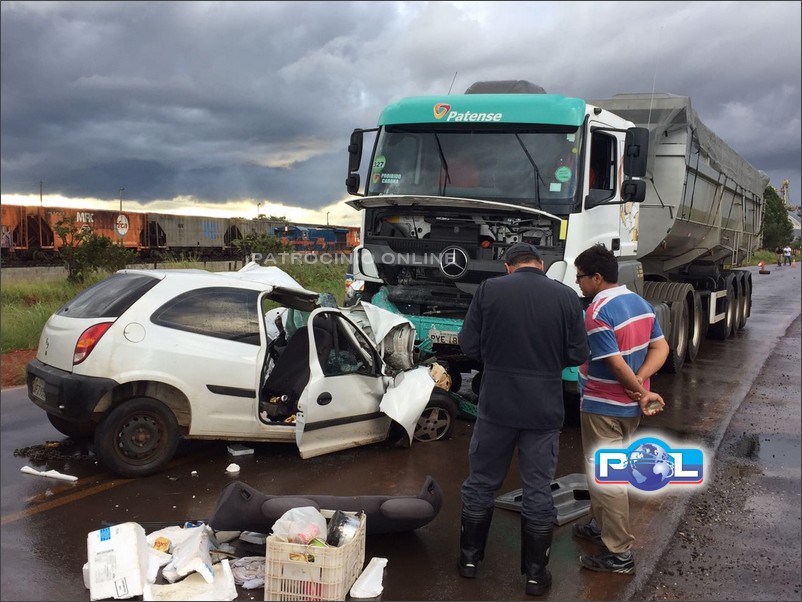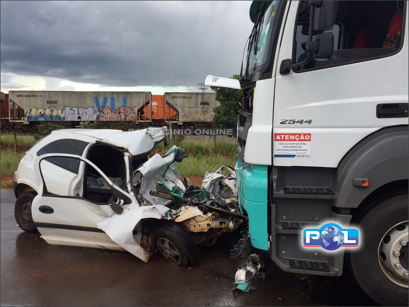 A vitima fatal estava num veiculo Fiat/Uno de cor branca, com placas de Uberaba/MG