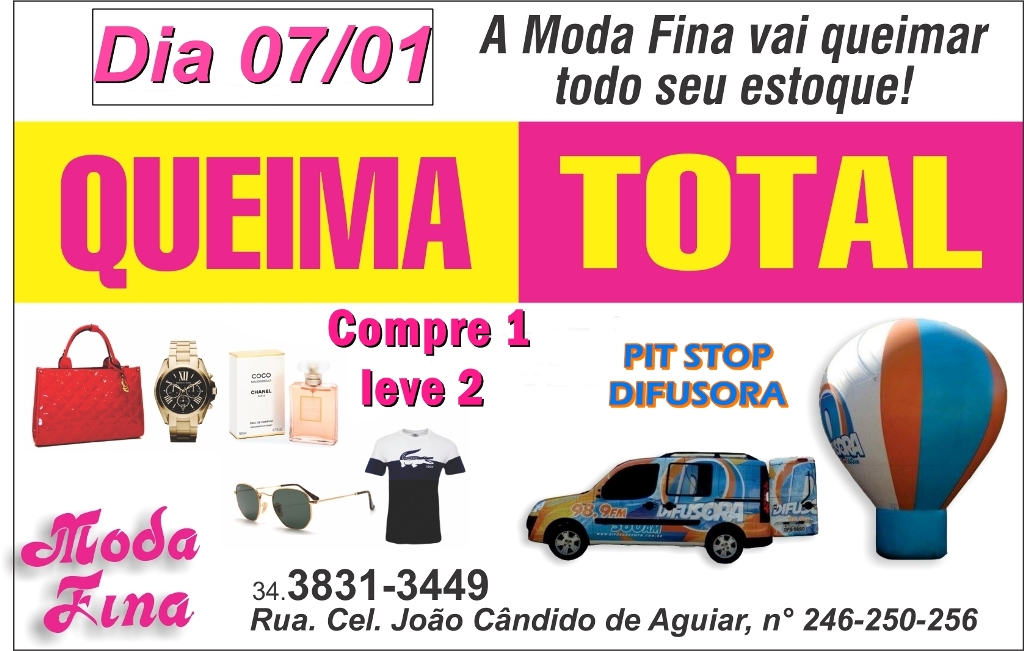 Está de volta a maior e melhor promoção da Moda Fina neste sábado dia 7 de janeiro