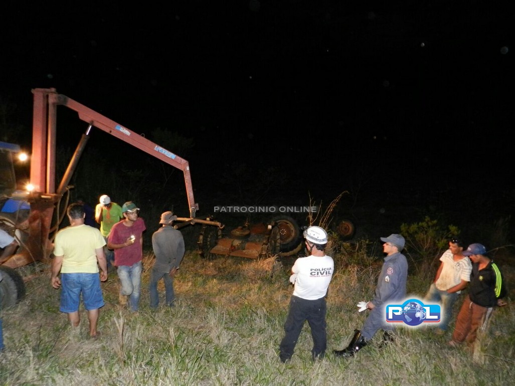 O filho acionou a Polícia Militar, onde também compareceao local uma Equipe do Corpo de Bombeiros que ajudou na retirada da vítima que usou outro trator para retirar o veículo que estava sobre o corpo da vítima.
