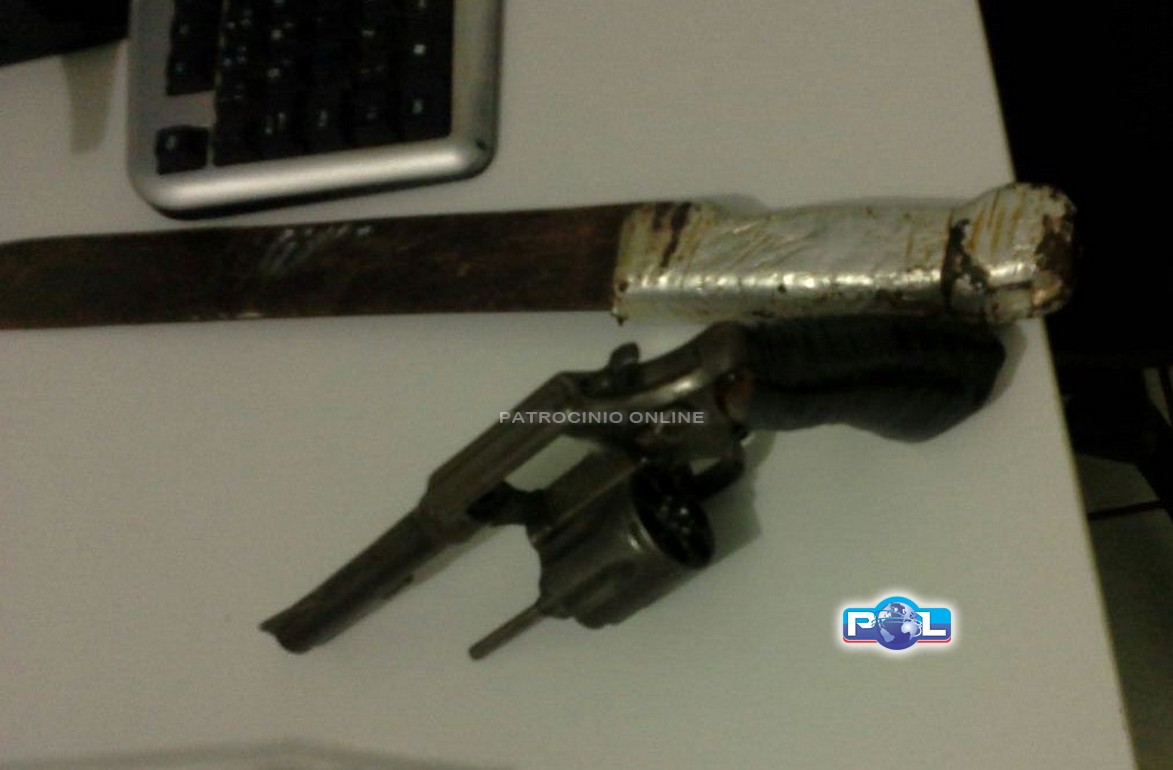 O suspeito foi preso e conduzido até delegacia de polícia civil na cidade de Patrocínio juntamente com a arma, o facão e munição apreendidos.