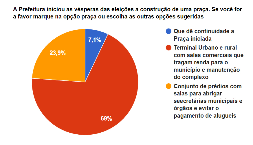 23,9 são a favor da construção de um complexo administrativo para abrigar secretarias e órgãos públicos e evitar o pagamentosde aluguéis..