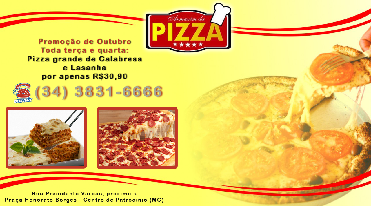 Toda terça e quarta: Pizza grande de Calabresa e Lasanha por apenas R$30,90