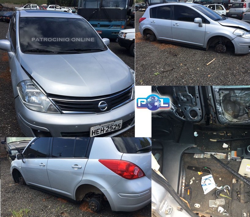 Um Nissan roubado foi localizado sem as quatros rodas, o som e os bancos