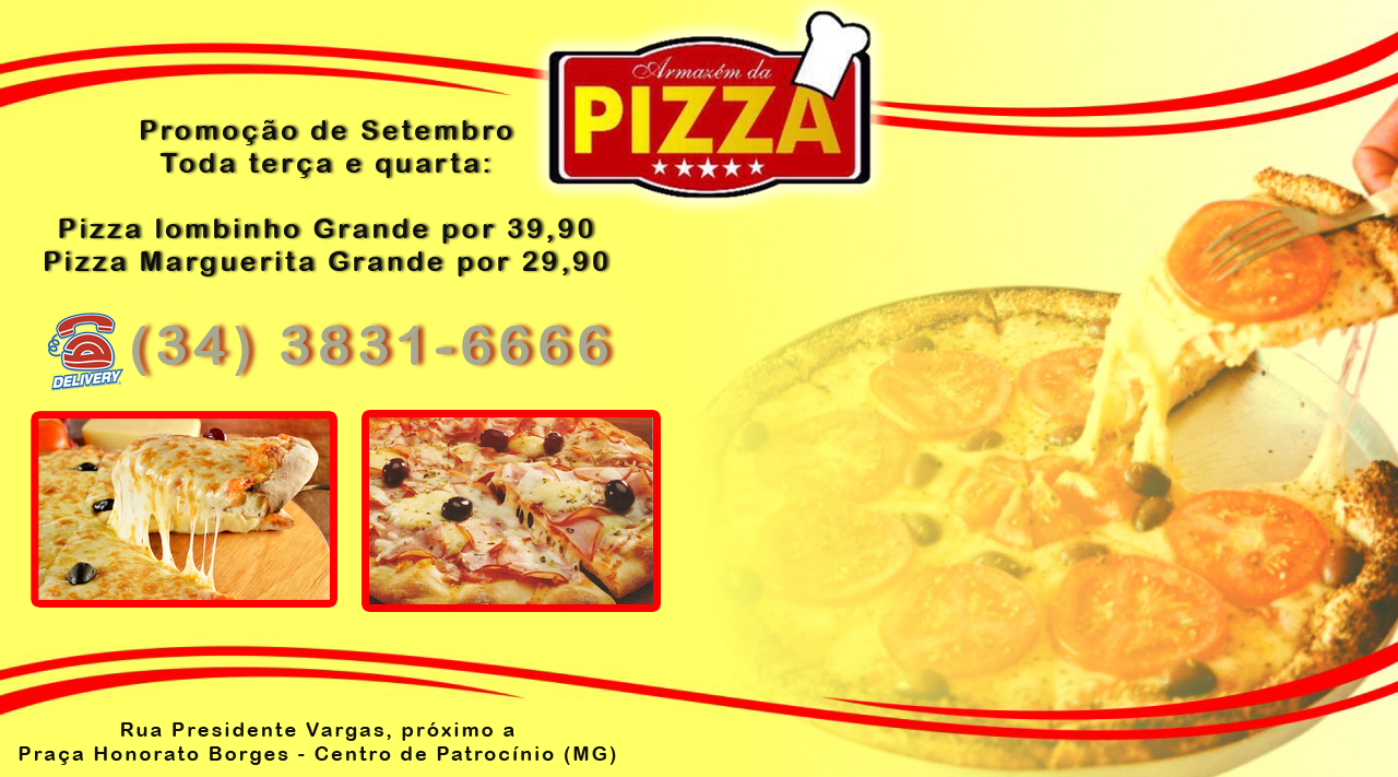 Toda terça e quarta: Pizza lombinho Grande por 39,90 Pizza Marguerita Grande por 29,90