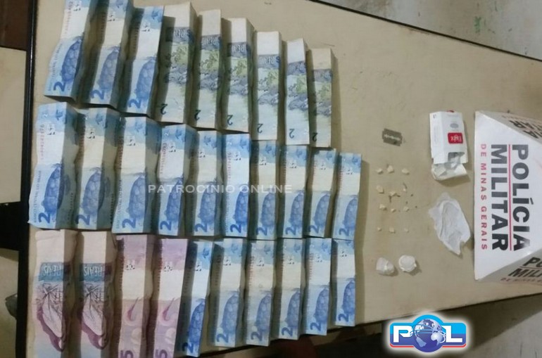Em Patrocínio/MG, no dia 6, as 18 horas, durante patrulhamento pelo Bairro Manoel Nunes, a Polícia Militar visualizou três suspeitos agachados próximo a entrada da residência de número 211 da Rua olímpia Nunes Corea. Ao avistarem a viatura policial tentaram evadir correndo, sendo dois deles contidos pelos militares. Durante buscas no local, foram encontradas 12 pedras de crack já fracionadas, em tamanho comercial, e 02 pedras maiores, que se fracionadas renderiam aproximadamente 30 pedras, uma lâmina de barbear com resquícios de crack e a quantia de R$ 90,00 em cédulas diversas.