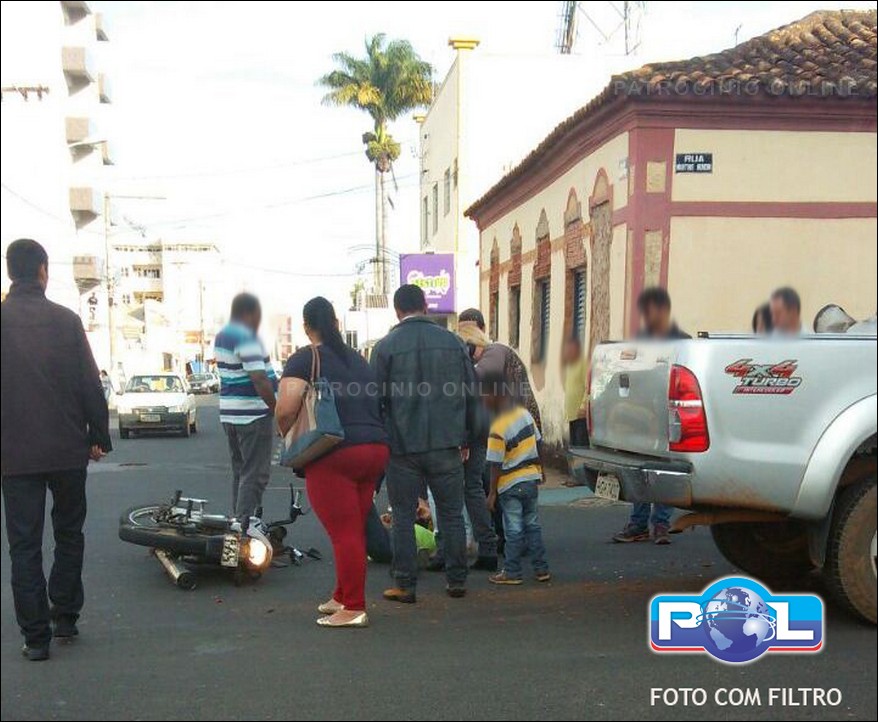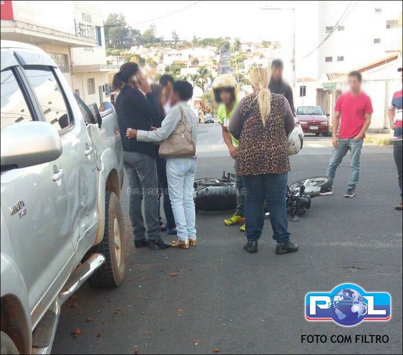 Por volta das 15h20m dessa quinta-feira, 22, segundo informações de nosso leitor que nos enviou estas fotos para o novo WhatsApp do P.O.L. ( 34 9988-6569) ele narra que o condutor da Toyota Hilux "furou o sinal de Parada Obrigatória" no cruzamento da Rua Presidente Vargas com Martins. Com a colisão o motocilista caiu, mas felizmente logo se levantou, sem ferimentos sérios, apenas o susto.