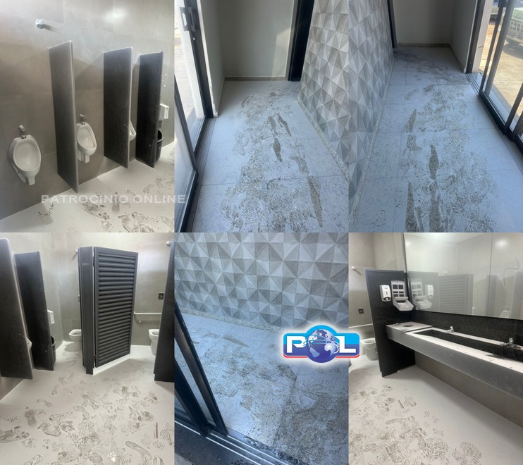 Suspeitos em veículo preto causaram danos e dispararam extintor dentro dos banheiros.