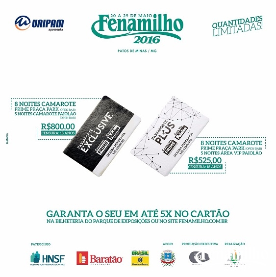 Começaram nesta quarta-feira as vendas dos passaportes para entrada no Paiolão e no camarote da Praça Park durante a Fenamilho 2016.