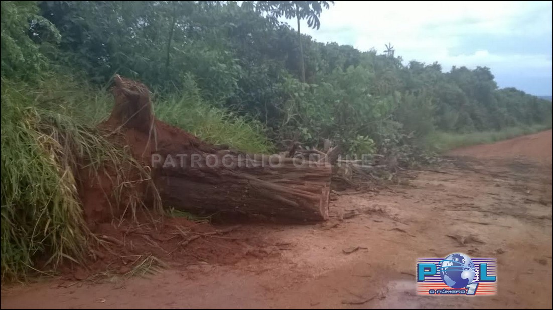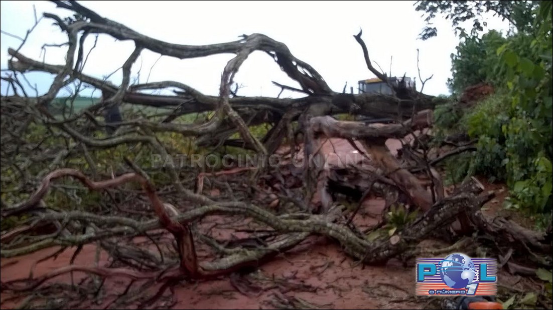 Uma equipe do 2º Pelotão do Corpo de Bombeiros compareceu também numa estrada vicinal há 15 KM de Patrocínio, onde houve queda de árvore e foi necessário os militares usarem a motoserra para desobstruírem a via para o trânsito.