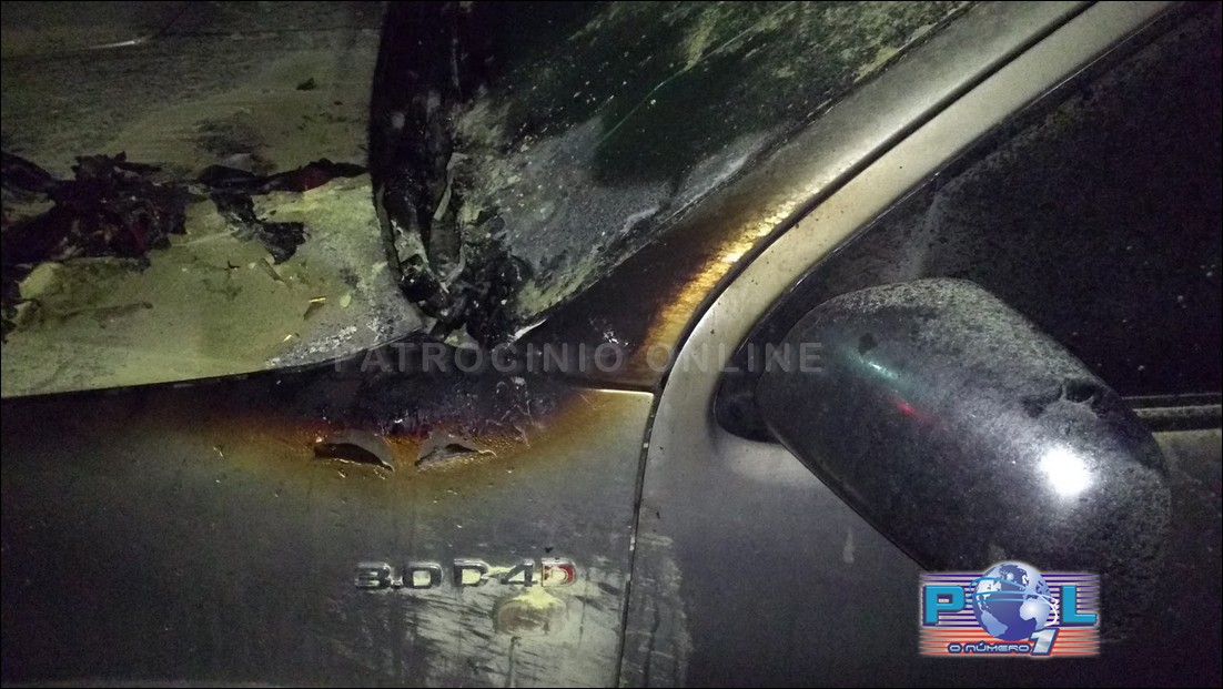 A PM compareceu ao local onde encontrou indícios de incêndio criminoso , uma camisa foi colocada entre abertura do capô onde a mesma se encontrava incinerada.