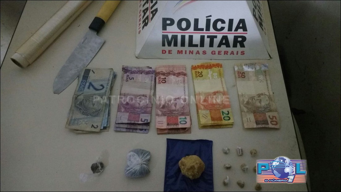 Em Patrocínio, na data de 24 de Janeiro de 2016, por volta das 23h00m, durante patrulhamento pela Rua Nove, militares da 265ª Companhia Tático Móvel depararam com o suspeito G. F., 35 anos, conhecido no meio policial pela prática de tráfico de drogas, furtos, homicídios. O autor, ao visualizar a viatura policial correu para o interior de uma residência, mas foi acompanhado e abordado. Durante busca pessoal, foram localizadas no bolso de sua bermuda, 12 pedras de crack e uma bucha de maconha, R$ 273,00 reais em dinheiro e uma pedra bruta de crack, que se fracionada renderiam 150 pedras.