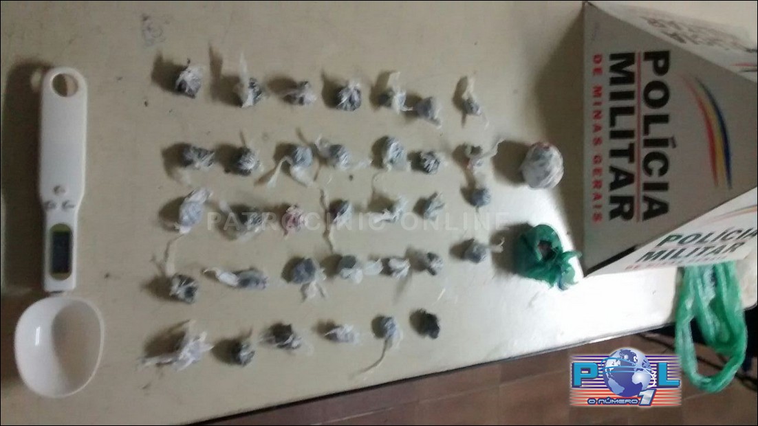 Em Patrocínio (MG), no dia 24 de Janeiro de 2016, por volta das 19h15min, militares da 265ª Companhia Tático Móvel, durante patrulhamento pela rua Marechal Floriano avistou o autor M. H. S., 20 anos, em frente uma residência portando uma sacola plástica nas mãos. Autor ao perceber que seria abordado, correu para o interior da residência, tentando arremessar a sacola plástica por cima do muro, porém essa caiu em seus pés, sendo autor abordado.