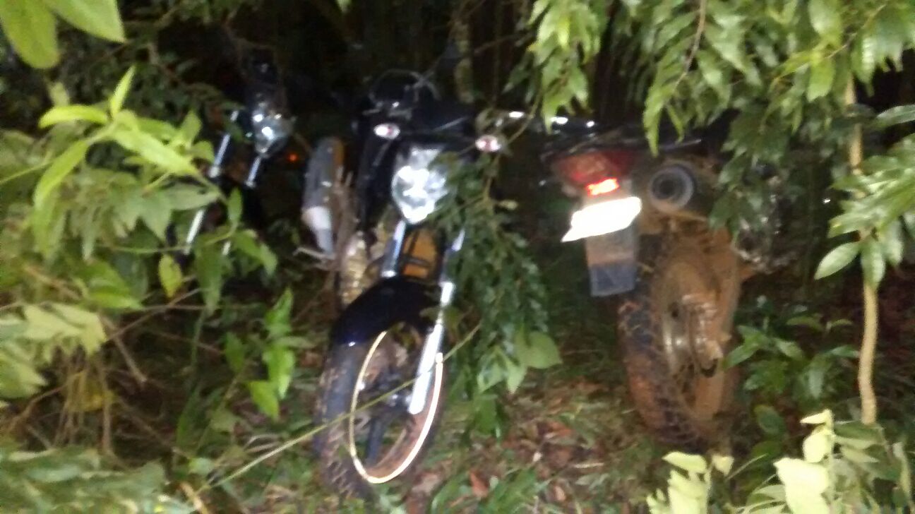 Depois de denúncia anônima uma equipe da Polícia Militar via 190, formada pelo Sargento Nunes e Soldado Valdetino se deslocou até a localidade de Chapadão de Ferro, área rural de Patrocínio (MG), onde foram encontradas em meio a um denso matagal três motocicletas. Verificando no sistema, os militares confirmaram que se tratava das mesmas motos que foram tomadas de assalto de uma revenda no bairro São Francisco há menos de duas semanas (leia aqui), que são: uma Yamaha Fazer YS250, cor roxa, emplacada em Patrocínio, placa HFU-3437, Honda CB300R, cor preta, emplacada em Ibiá, placa HEM-8238 e Honda NX-4 Falcon, cor preta, emplacada em Iraí de Minas, placa GYU-8123.