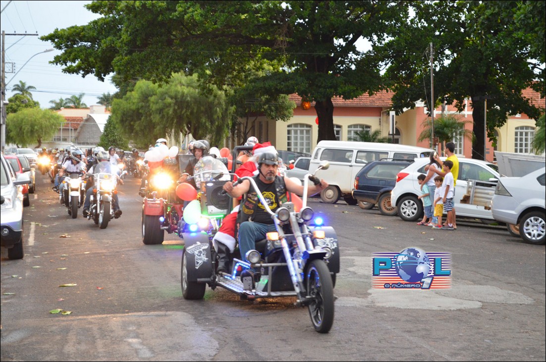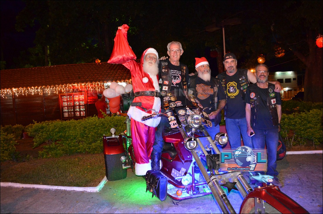 O Papai Noel este no não veio de carro de corpo de bombeiros, nem de helicóptero ou avião. Veio num triciclo acompanhado pelos simpáticos integrantes de grupos de motociclismo da cidade, entre eles o famoso Faísca Estradeiro, conhecido como Vampiro Brasileiro.