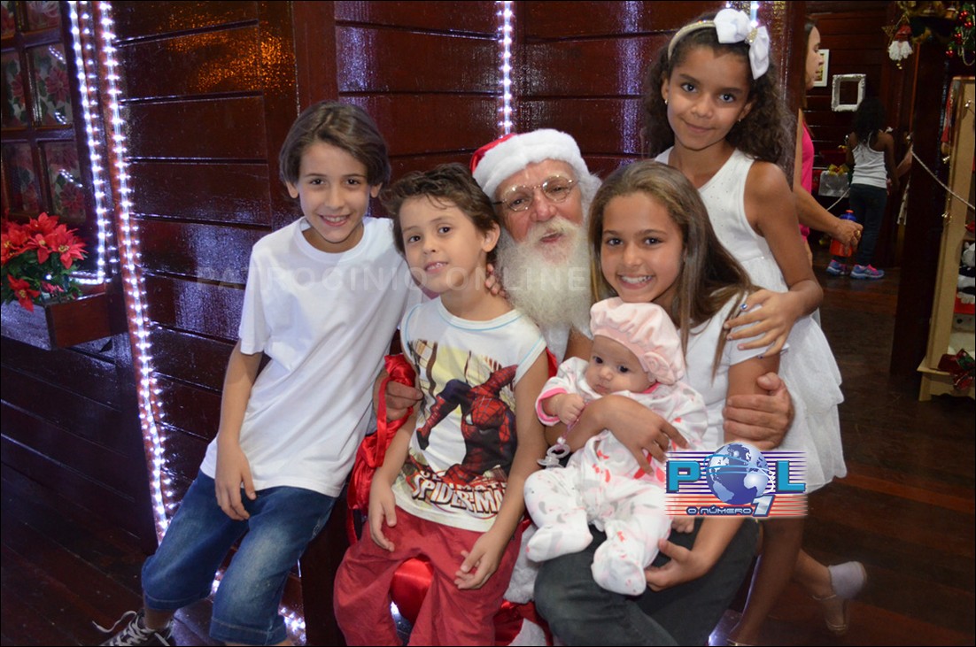 Logo após, o Papai Noel recebeu as crianças para fotografias, que também receberam balas e afagos dom "bom velhinho".